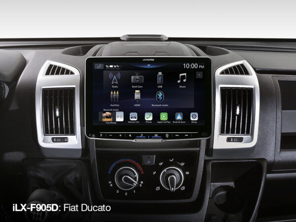 Alpine ILX-F905D on maailman ensimmäinen autoihin tehty jälkiasennussoitin, jossa on sisäänrakennettu 4 x 50W vahvistin. D-luokan vahvistimen etuna on uskomattoman hyvä hyötysuhde (noin 90%) verrattuna AB-luokan vahvistimen hyötysuhteeseen (noin 50-70%). Uudet ja lähes äänettömät high-speed tuulettimet pitävät soittimen viileänä.