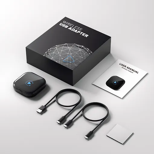 Android Auto / Apple CarPlay -langaton adapteri tekee langallisesta yhteydestä langattoman. Yhdistä autosi Android Auto tai Apple CarPlay -järjestelmä puhelimeesi langattomasti tämän kätevän adapterin avulla.
