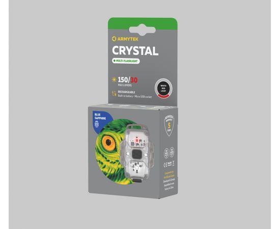 Armytek Crystal on monipuolinen valaisin, jossa on 150 lumenin valkoinen valo ja 30 lumenin kirkas punainen valo. Kompaktin kokoinen ja kevyt valaisin joka mahtuu kätevästi taskuun, voidaan kiinnittää reppuun tai muuhun hihnaan, toimii otsavalaisimena, käyttötarkoituksia tälle lampulle on monia.