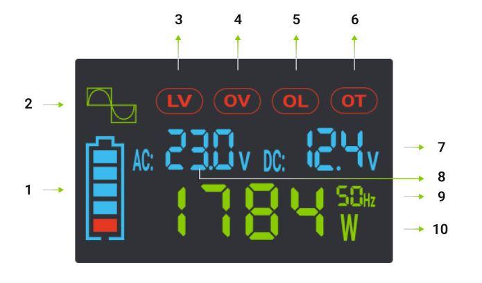 2000W jatkuvalla teholla (piikkiteho 4000W) toimiva invertteri, jossa integroitu näyttö mistä näet mm. suojausvaroitukset, latauksen tason, kuormituksen tason ja kuormituksen.