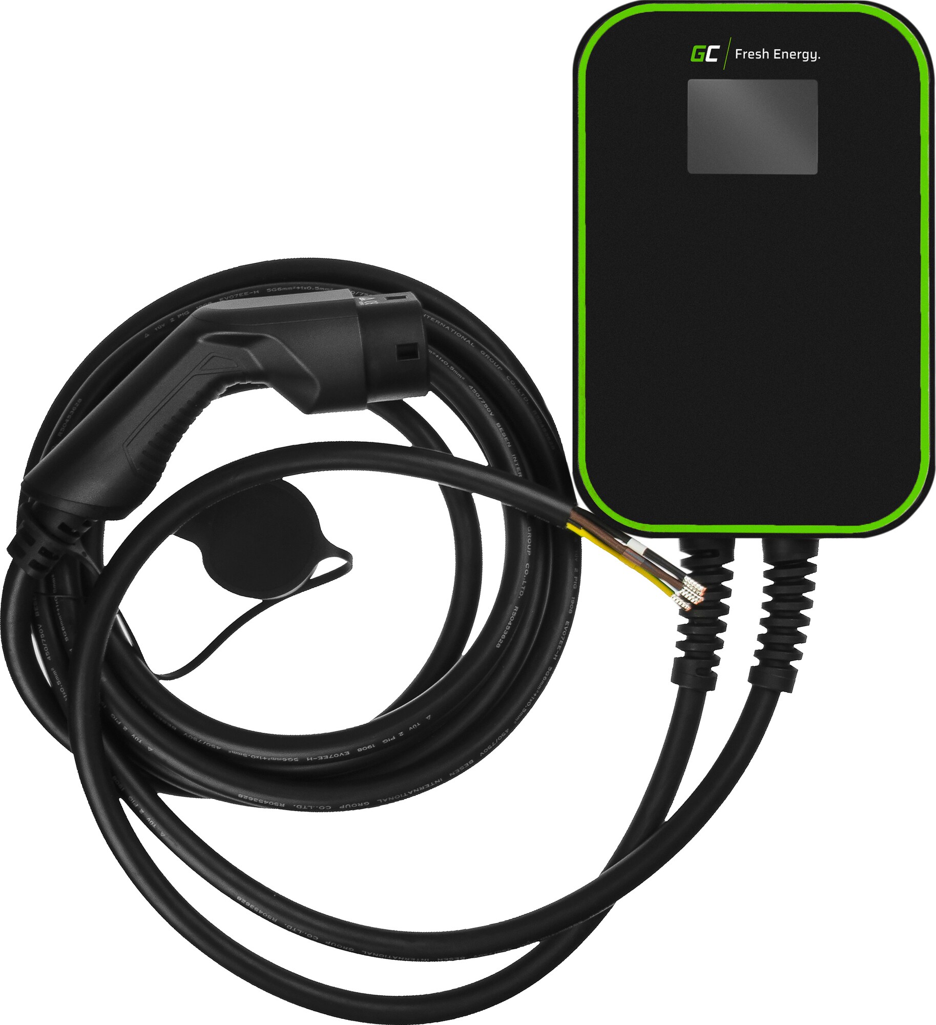 Green Cell sähköauton latausasema on kätevä apuri kakkostyypin pistokepaikalla varustetun hybridi- tai sähköauton lataamiseen. Siinä on lataustiedot osoittava LCD-näyttö ja tuki kolmivaiheiselle lataamiselle jopa 22 kW teholla. IP66-luokituksen ansiosta se kestää roiskeita ja takaa turvallisen lataamisen monissa eri ympäristöissä. Laturin mukana tulee myös 6,5-metrinen latauskaapeli.