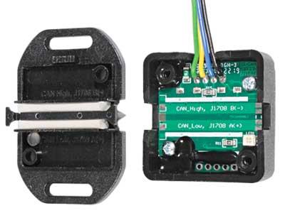 - Lukija kiinnitetään CAN-väylän johtojen ympärille: kiristys kahdella ruuvilla takaa pitävän kiinnityksen