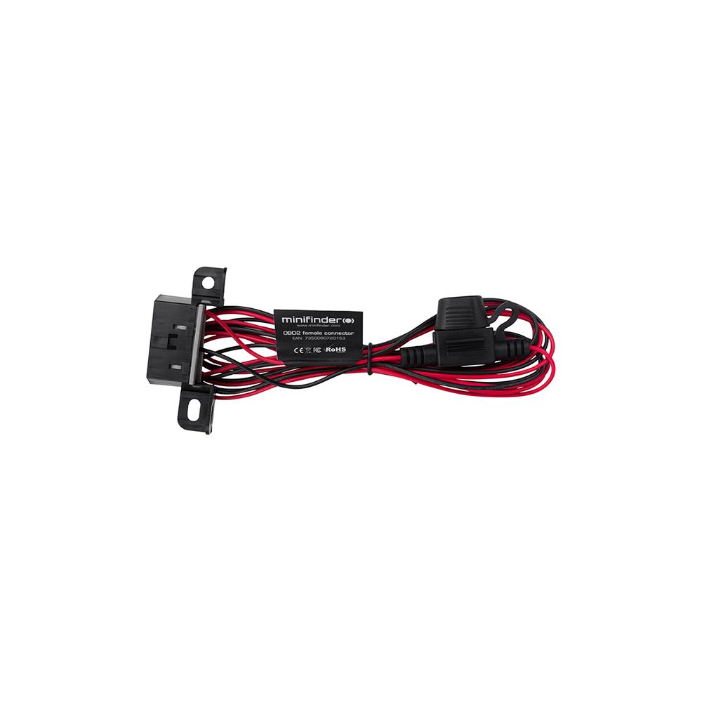 OBD-adapteri jonka avulla Minifinder GPS-seurantalaite voidaan kytkeä suoraan ajouvon akulle. Käyttöjännite 9-36V. Johdossa valmiina IP-suojattu sulakepesä.