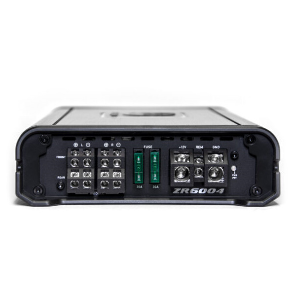 ZR6004 on todella tehokas, mutta D-luokan ansiosta kuitenkin erittäin kompaktin kokoinen nelikanavainen vahvistin (pituus vain 24cm). Tyylikkään mustan ulkokuoren sisällä on Phoenix Goldin ”signature gold design” piirilevy, laadukkailla komponenteilla höystettynä.