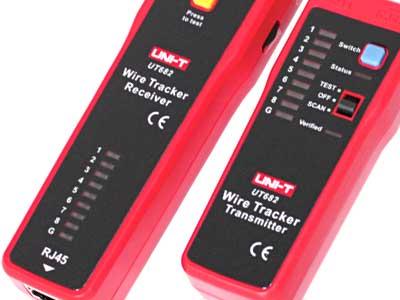 lähetin ja vastaanotin, ethernet- ja puhelinkaapeleiden sekä sähköjohtojen tutkiminen eristettä rikkomatta, liittimet RJ11, RJ45, ethernet-kaapeleiden vianetsintä, sähköjärjestelmien ja kaapeleiden testaus. johtotestaus: LAN – puhelin – koaksiaali – sähköjohdot, tietoliikennekytkimien käytönaikainen testaus, signaalivoimakkuuden merkkivalo, testausetäisyys: puhelinlinja ≥3000m – vaipalliset ja vaipattomat kaapelit ≥320m – videokaapelit ≥100m, katkosten ja oikosulkujen etsintä, napaisuuden tunnistus puhelinlinjoissa (5-52VDC), liitintestaus: puhelin ja LAN, katkoskohdan etsintä, lähettimen signaalijännite ≥12Vp-p, lähettimen äänivalinnat: nopea/hidas, käyttöjännite (vastaanotin ja lähetin): 9V paristo (alijännite ilmoitus ≤6.6V), käyttölämpötila: -10°C … +50°C ̶ 20-75%RH, CE, RoHS, EN61010-1, EN61326-1