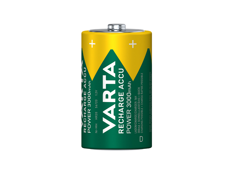 Erittäin laadukas ja pitkäikäinen Varta ladattava D-paristo 2kpl pakkaus.